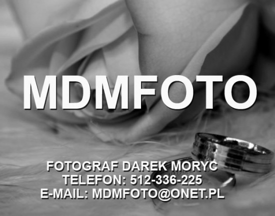 Potrzebujesz fotografa lub kamerzysty na ślub, wesele, chrzciny lub inną imprezę okolicznościową? Profesjonalne wideofilmowanie, a także fotografia ślubna tylko w MDMFoto w Warszawie. Kamerzysta na wesele, fotograf ślubny, fotograf na chrzest Telefon: 512-336-225 | E-mail: (skorzystaj z formularza) www.mdmfoto.pl