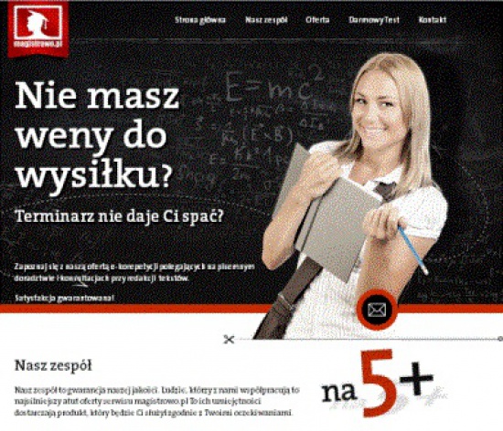 Jeśli Twój czas nieubłaganie upływa, zdecyduj się na naszą ofertę. Pomagamy studentom w pisaniu prac magisterskich i licencjackich ze wszystkich dziedzin, także w językach obcych (angielski, niemiecki, rosyjski, hiszpański, włoski, francuski). Zapewniamy: badanie antyplagiatowe, niską zaliczkę, płatność w ratach, bezpłatne poprawki błędów. Na życzenie podpisujemy umowę. Nie polegaj na obietnicach – skorzystaj z pewnej gwarancji . Zapraszamy. (skorzystaj z formularza) numer telefonu 665-229-151